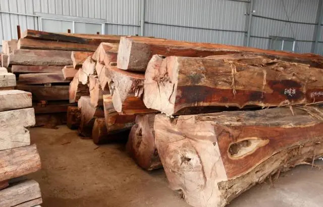 微凹黄檀是红酸枝类中的一种木材,产自南美和中美洲,是改革开放后进入中国的红木木材,近年来在市场中得到广泛应用。这种木材纹理近似老挝红酸枝,常见黑褐色条纹,且纹理清晰,色泽多偏橘红色,染色后很难分辨。此时,便可将味道作为辨别方法,上文提到老挝红酸枝有酸香气,而微凹黄檀有较为浓郁的辛辣味,区别比较明显。